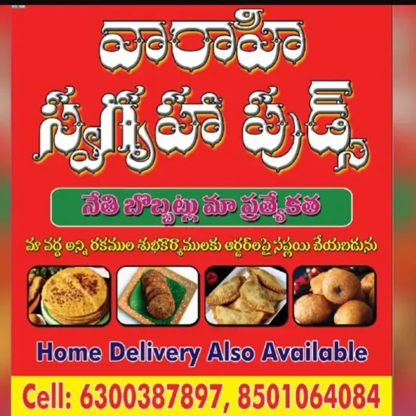 Varahi swagruha foods. is in located in near vijay durga tiffins, balaji nagar , Kukatpally,Hyderabad. We are known traditional sweets, and hot items. 63003878...View More